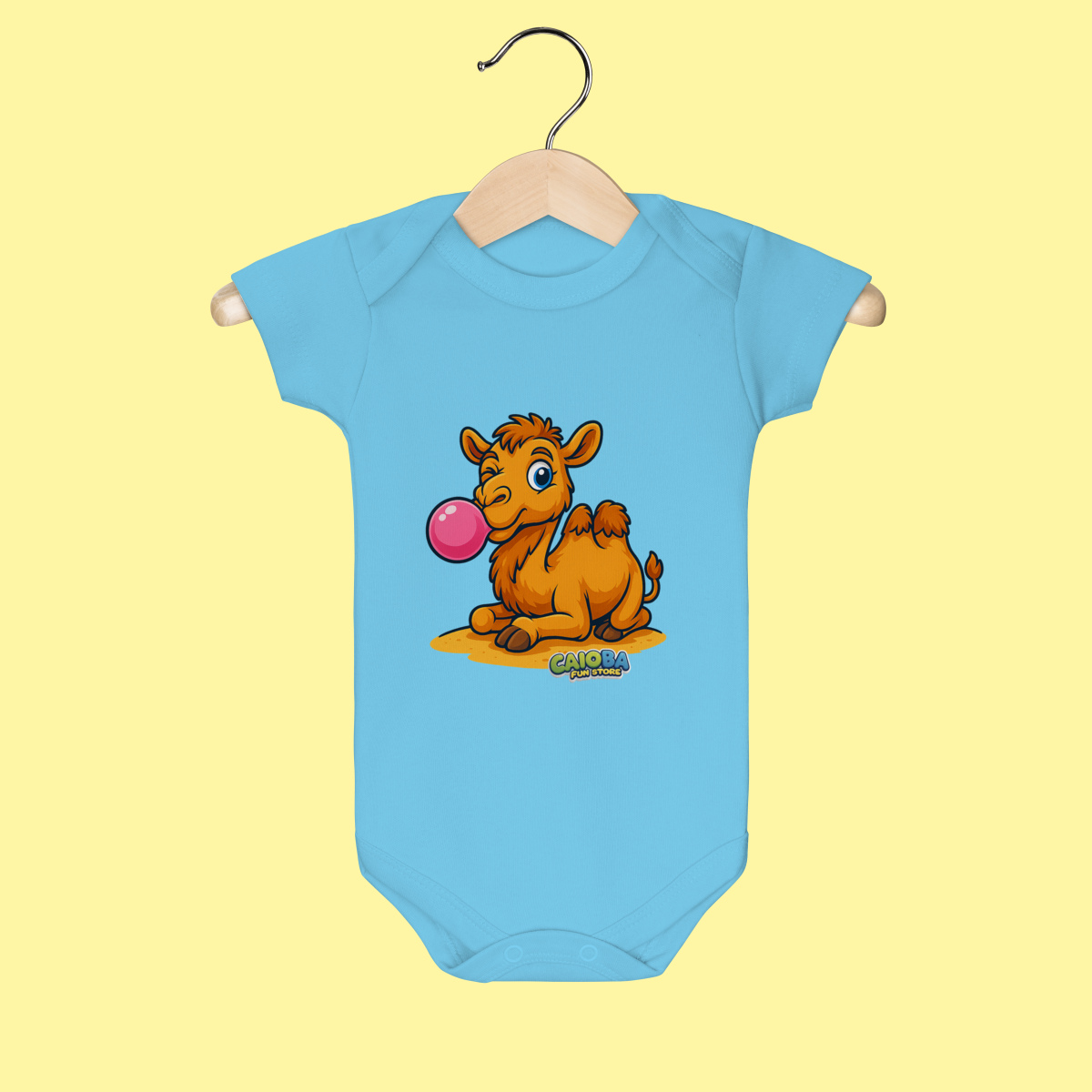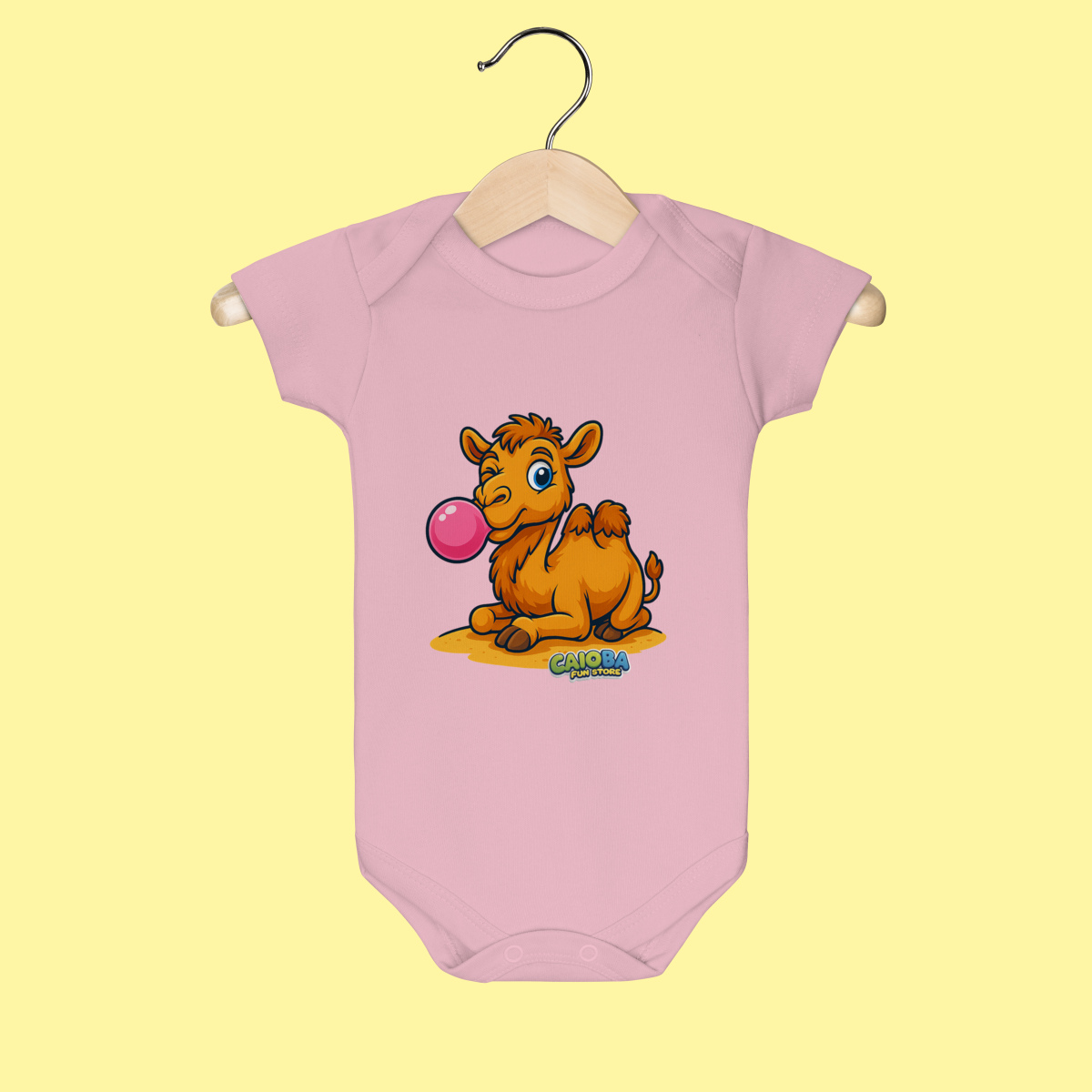 A estampa exclusiva traz um camelo divertido e simpático, criada a partir das ideias criativas de uma criança de 7 anos. Impressa com tecnologia DTF (Direct to Film), garante cores vivas, traços bem definidos e longa durabilidade, mesmo após várias lavagens.
