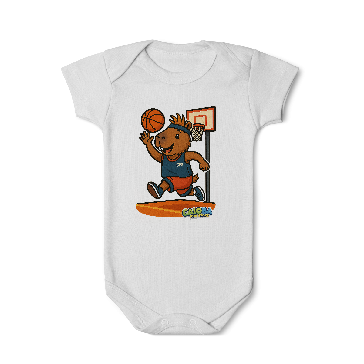 Body Infantil Capivara Jogando Basquete – Coleção Reino Capivara do Caioba
