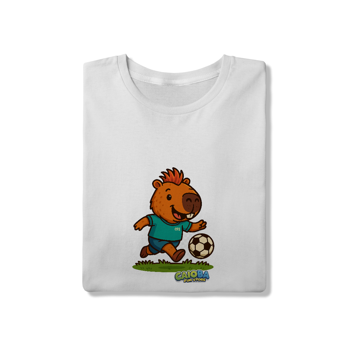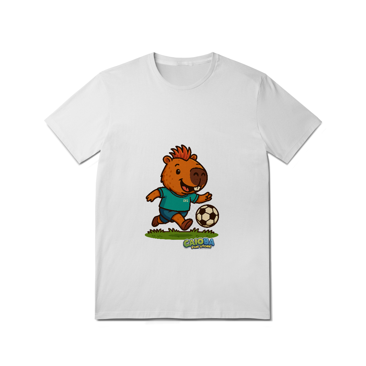 Camiseta Adulto Capivara Jogando Futebol – Coleção Reino Capivara do Caioba