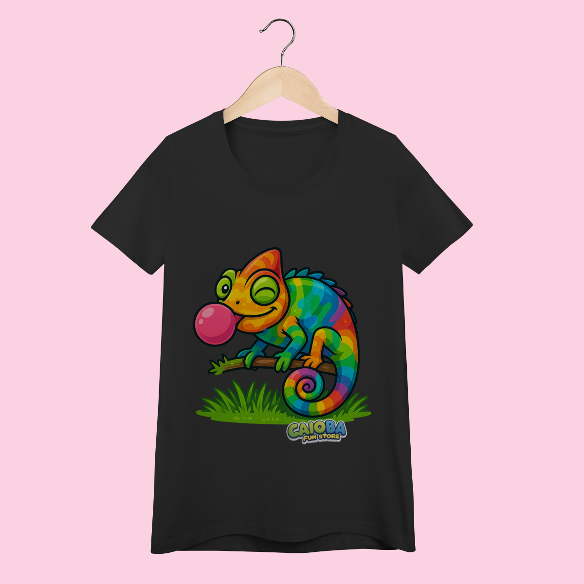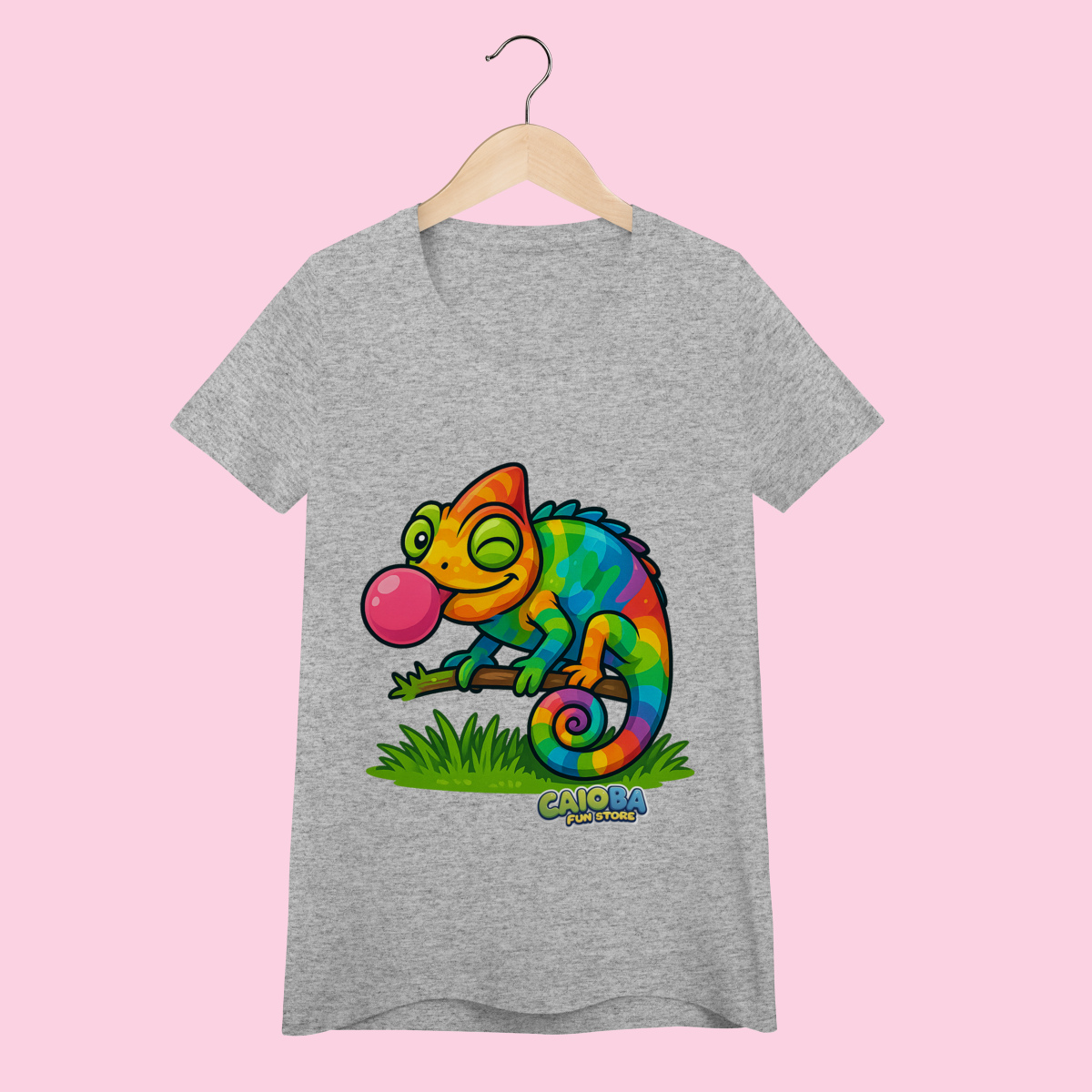 A estampa exclusiva traz um camaleão colorido e estiloso, inspirado nas ideias de uma criança de 7 anos, que transforma a peça em um item único. Impressa em Silk Digital HD, garante cores vibrantes, alta definição e durabilidade, mesmo após várias lavagens.