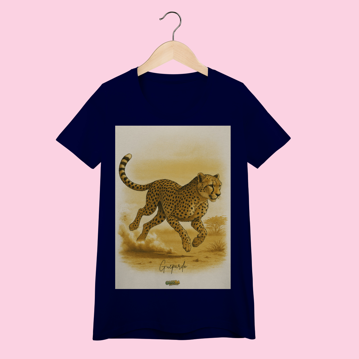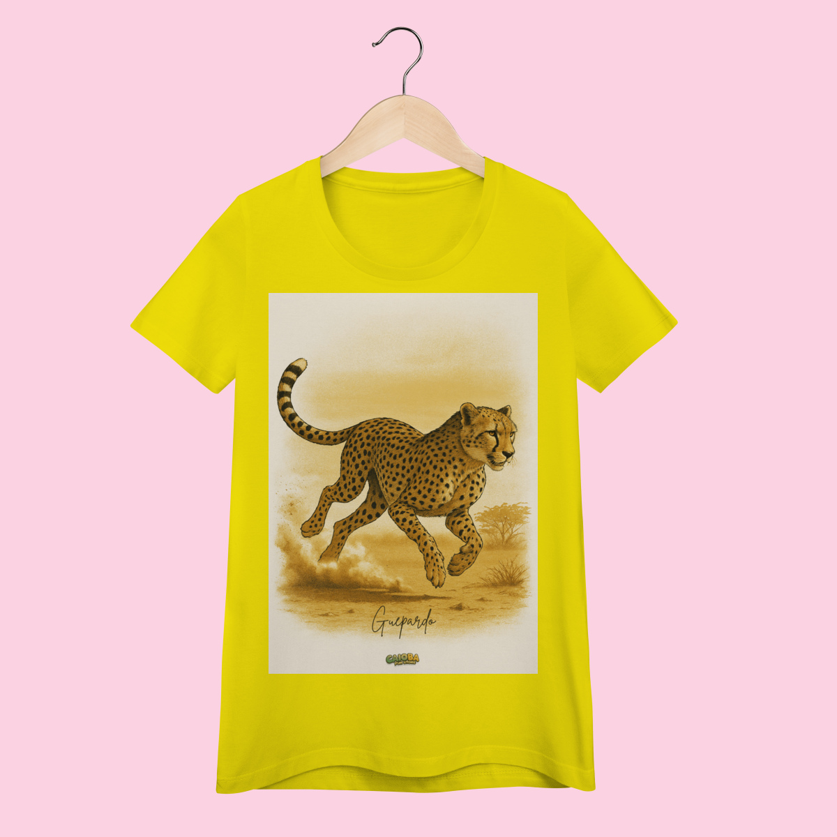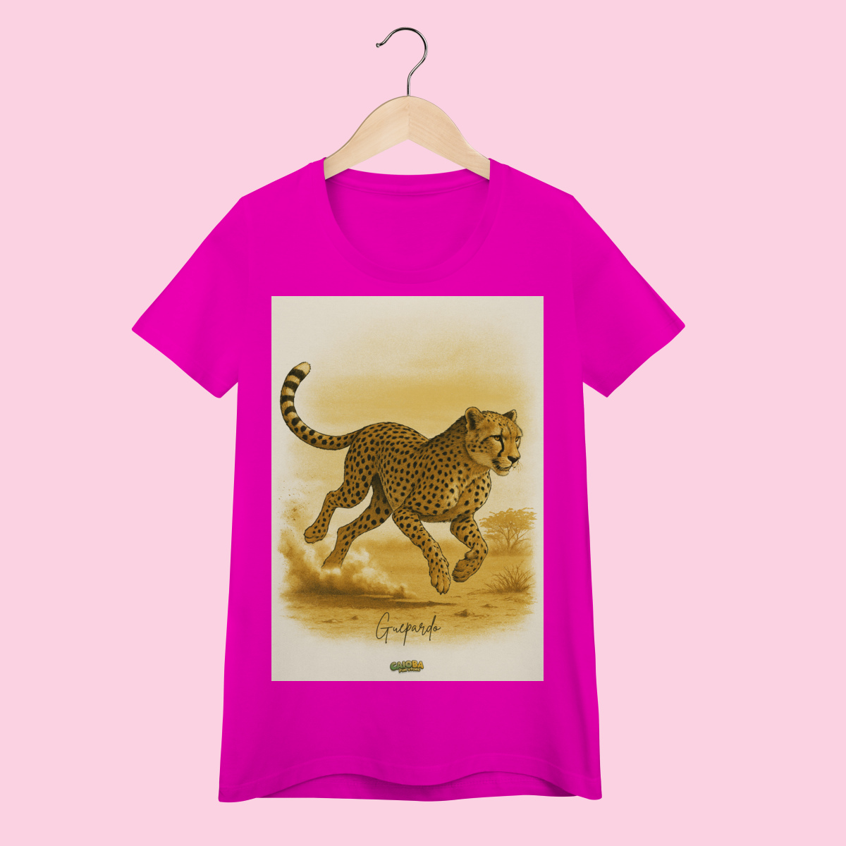 A estampa exclusiva apresenta um guepardo elegante e cheio de atitude, criada especialmente para a Coleção Fauna do Caioba. Impressa com tecnologia Silk Digital HD, garante cores vibrantes, traços realistas e alta durabilidade, mesmo após várias lavagens.