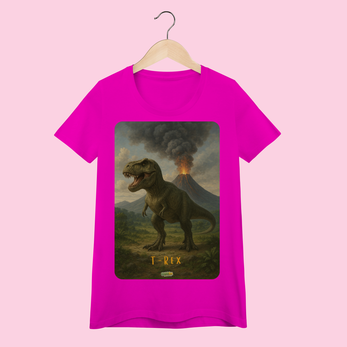 A estampa exclusiva apresenta um Tiranossauro Rex estilizado e poderoso, criada especialmente para a Coleção Dinossauros. Impressa com tecnologia Silk Digital HD, proporciona cores vibrantes, detalhes realistas e alta durabilidade, mesmo após várias lavagens.