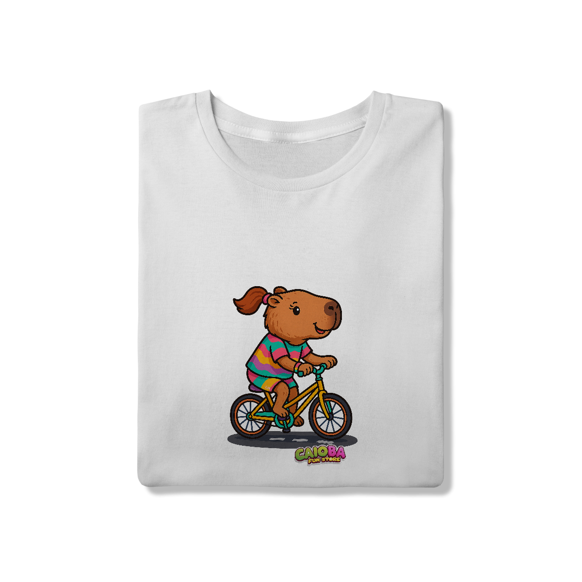 Parte da nossa criativa Coleção Reino Capivara do Caioba, essa camiseta é perfeita para meninas que amam pedalar, explorar e se divertir com estilo.