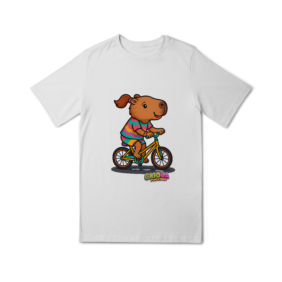 Parte da nossa criativa Coleção Reino Capivara do Caioba, essa camiseta é perfeita para meninas que amam pedalar, explorar e se divertir com estilo.