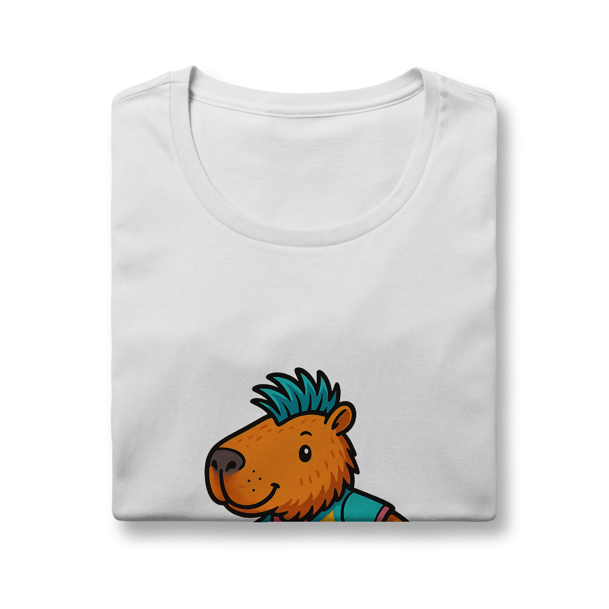 A estampa exclusiva traz uma capivara estilosa andando de skate, com visual colorido e cheio de personalidade. Produzida com Silk Digital HD, a arte tem alta definição, cores vibrantes e durabilidade superior, mesmo com uso frequente.