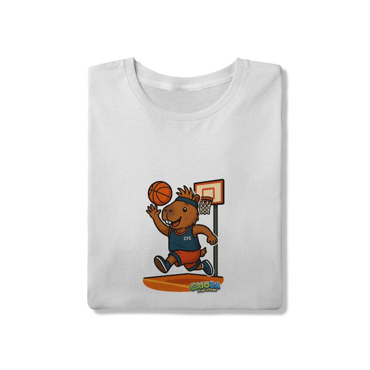 Camiseta Adulto Capivara Jogando Basquete – Coleção Reino Capivara do Caioba