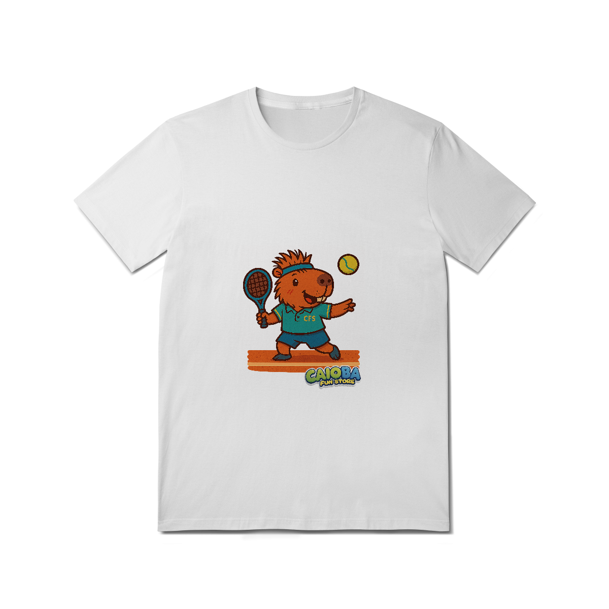 Camiseta Adulto Capivara Jogando Tênis – Coleção Reino Capivara do Caioba