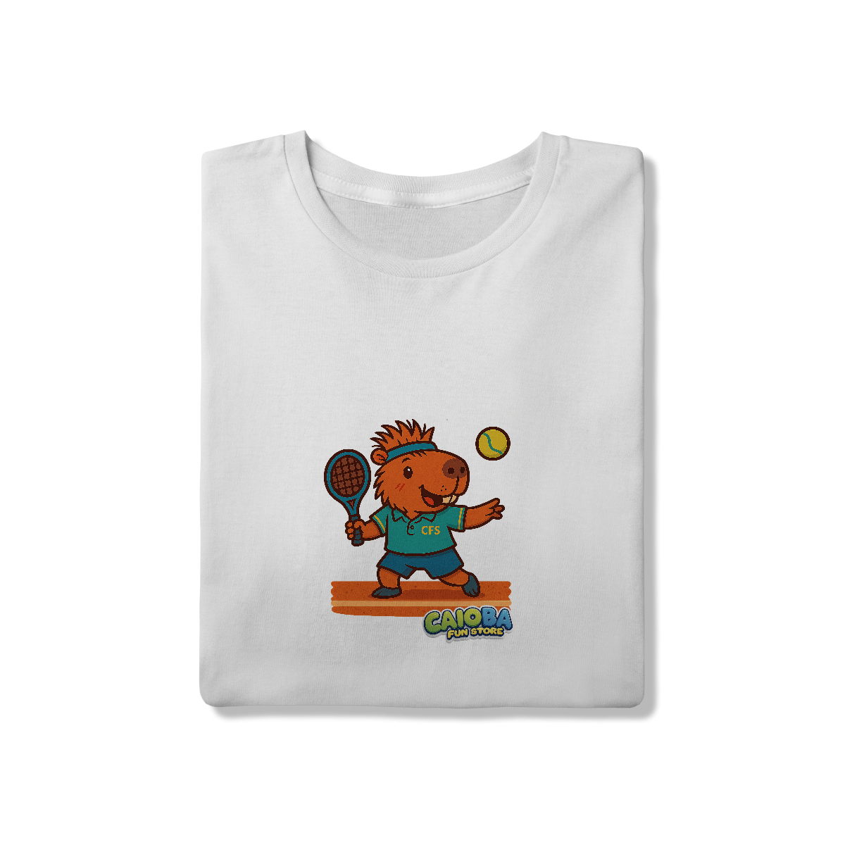 A estampa exclusiva traz uma capivara jogando tênis, em uma arte divertida, colorida e cheia de personalidade. Produzida com Silk Digital HD, a impressão garante alta definição, cores vibrantes e resistência, mesmo após várias lavagens.