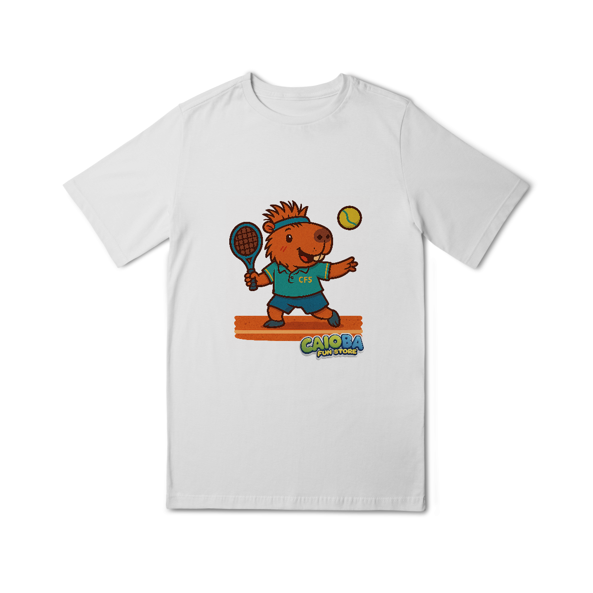 A estampa exclusiva traz uma capivara jogando tênis, com roupa esportiva e muito carisma, em uma arte colorida, divertida e cheia de movimento. A impressão com Silk Digital HD oferece alta definição, cores vibrantes e excelente durabilidade.