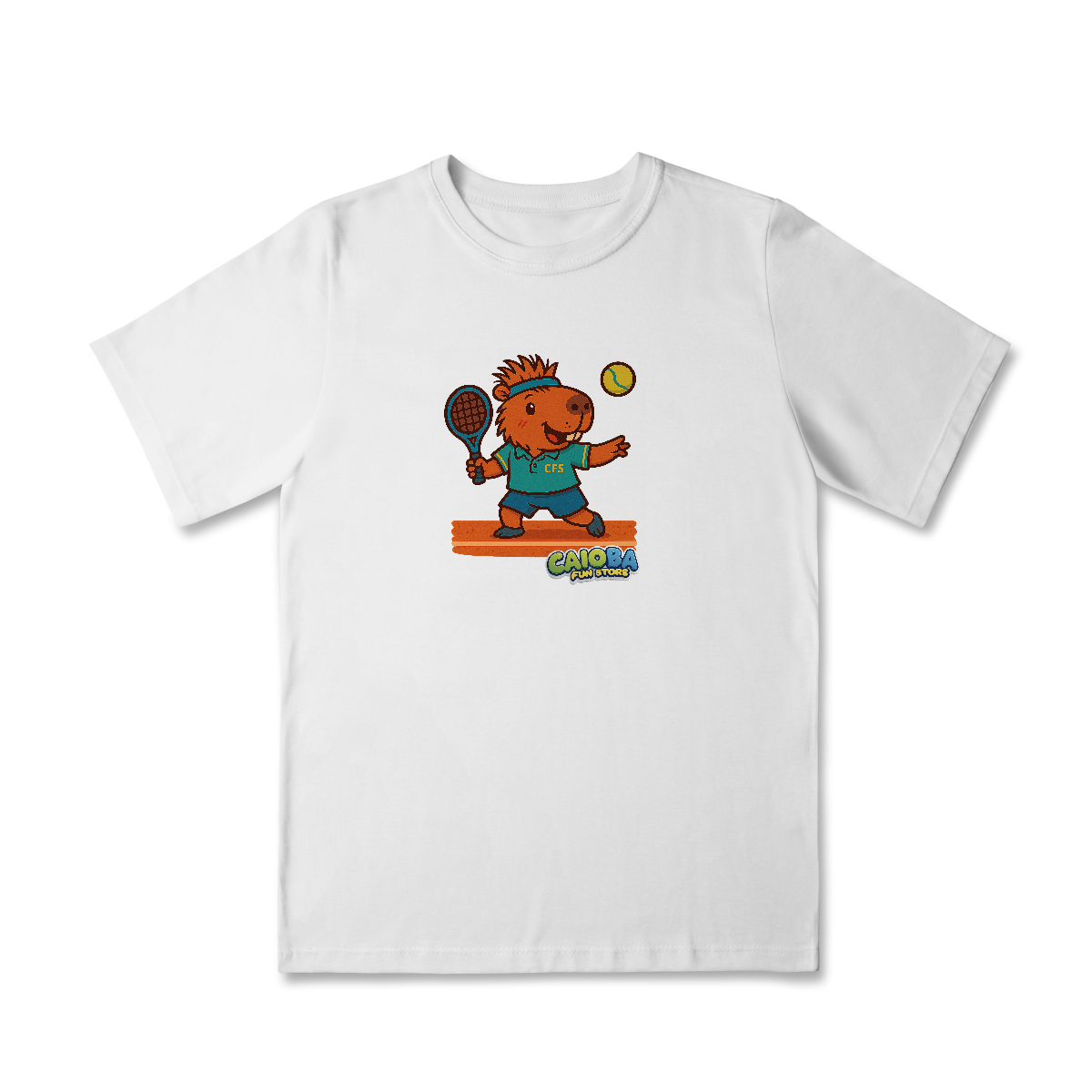Camiseta Infantil Capivara Jogando Tênis – Coleção Reino Capivara do Caioba