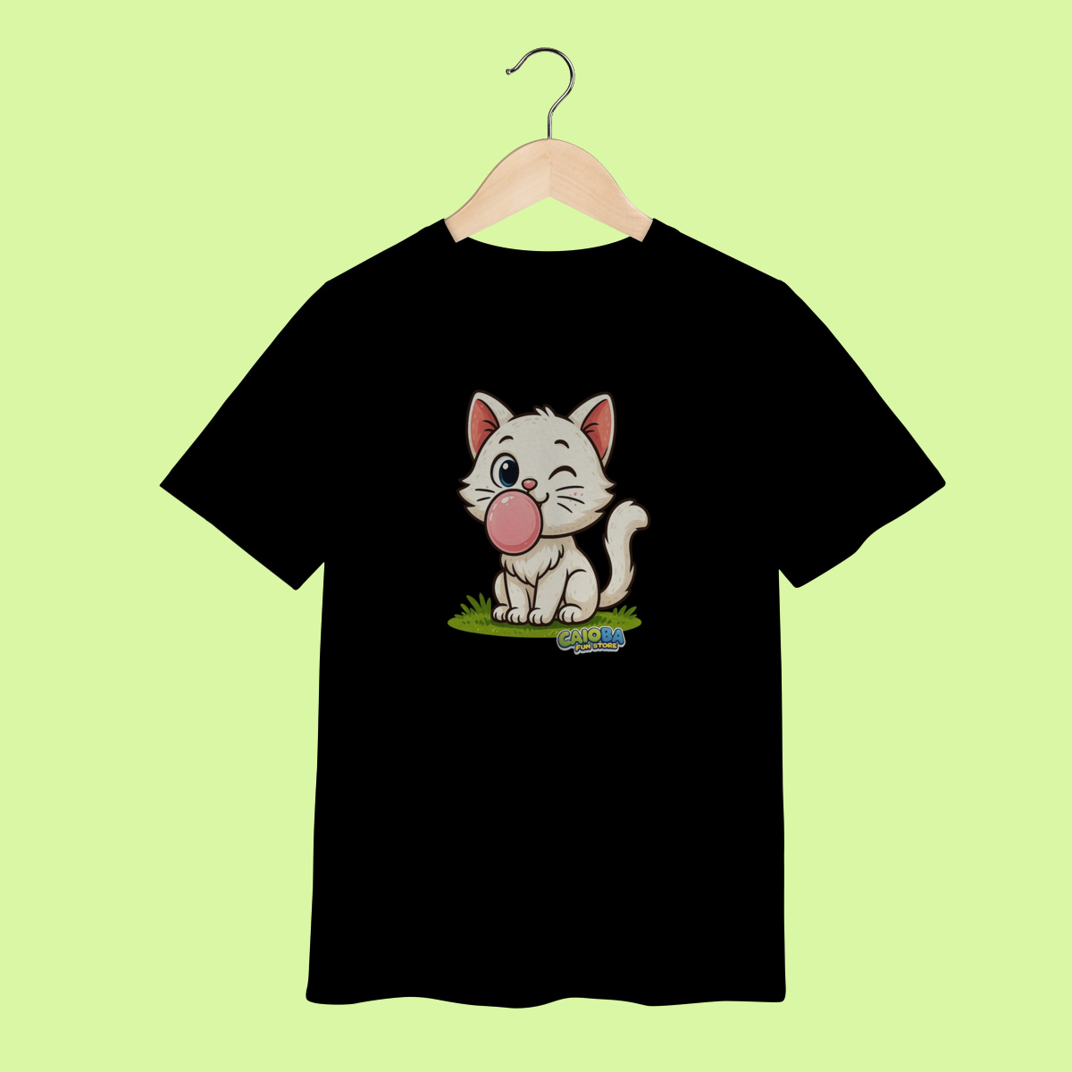 A estampa exclusiva apresenta um gatinho branco fofo e divertido, desenvolvida a partir das ideias originais de uma criança de 7 anos. Impressa com tecnologia Silk Digital HD, oferece cores vivas, traços nítidos e durabilidade, mesmo após várias lavagens.