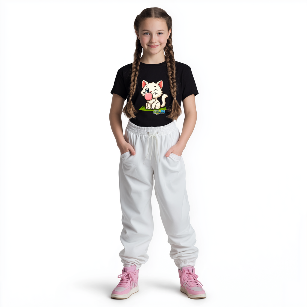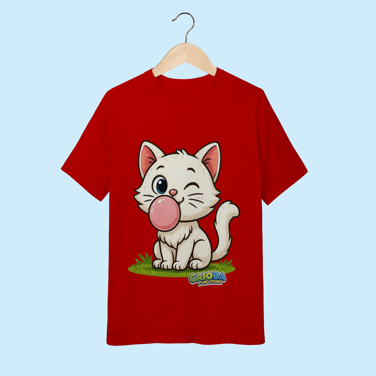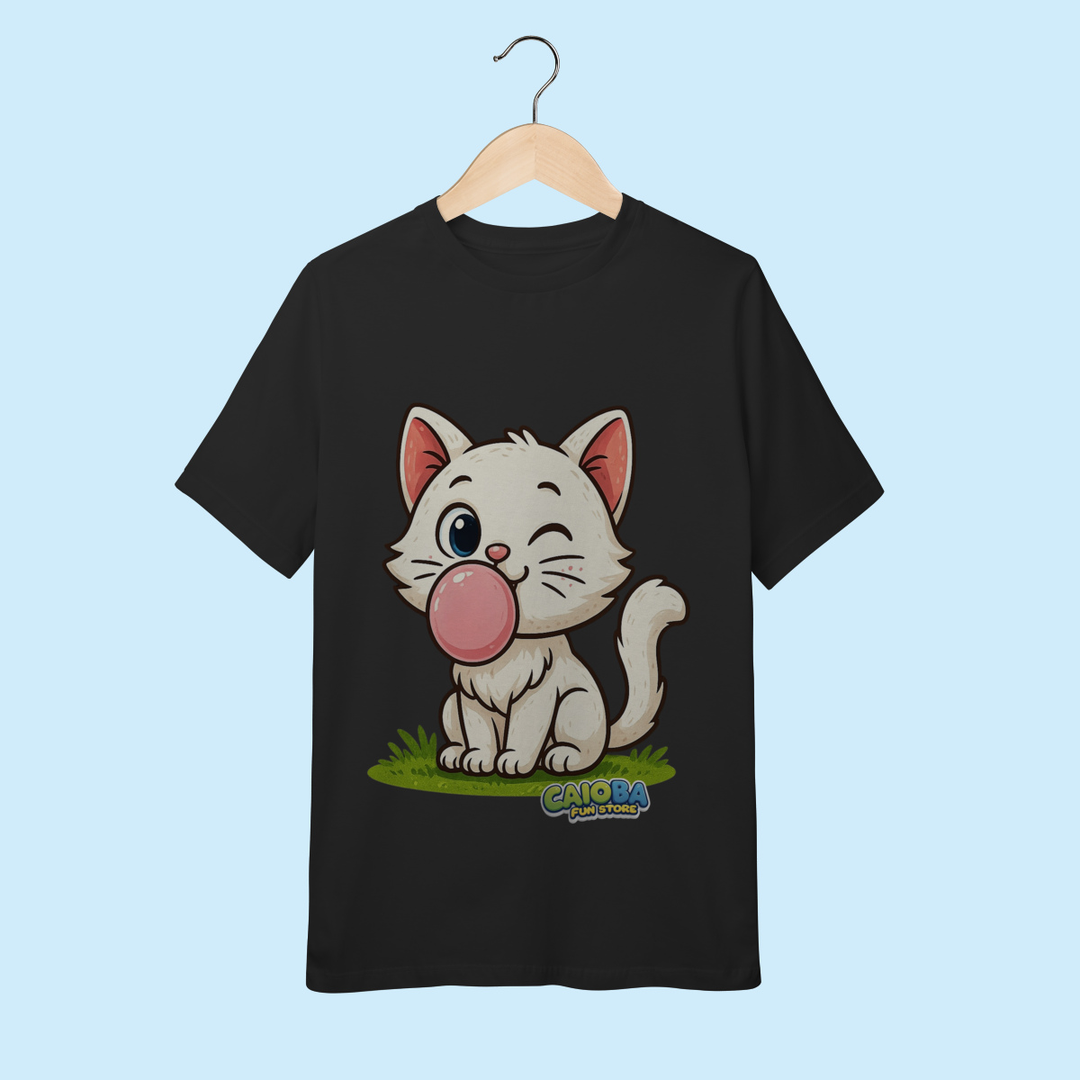 A estampa exclusiva apresenta um gatinho branco fofo e cheio de personalidade, inspirada nas ideias de uma criança de 7 anos. Impressa com tecnologia Silk Digital HD, oferece cores vibrantes, traços nítidos e excelente durabilidade, mesmo após várias lavagens.