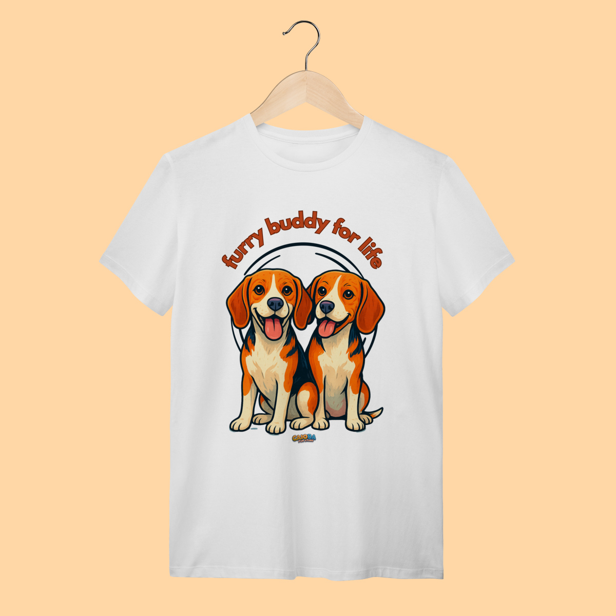 A estampa exclusiva apresenta 2 beagles simpáticos e cheios de personalidade, em um design colorido e criativo que traduz autenticidade. Impressa com tecnologia Silk Digital HD, garante cores vibrantes, traços nítidos e longa durabilidade, mesmo após várias lavagens.