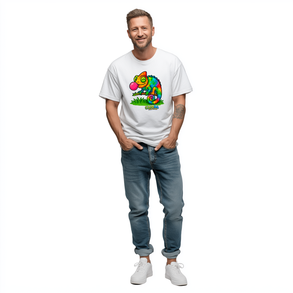 A Camiseta T-shirt Adulto Unissex Camaleão é a escolha certa para quem busca uma peça confortável, divertida e cheia de estilo. Produzida em malha premium 100% algodão, oferece maciez, respirabilidade e excelente caimento, ideal para uso diário ou ocasiões casuais.