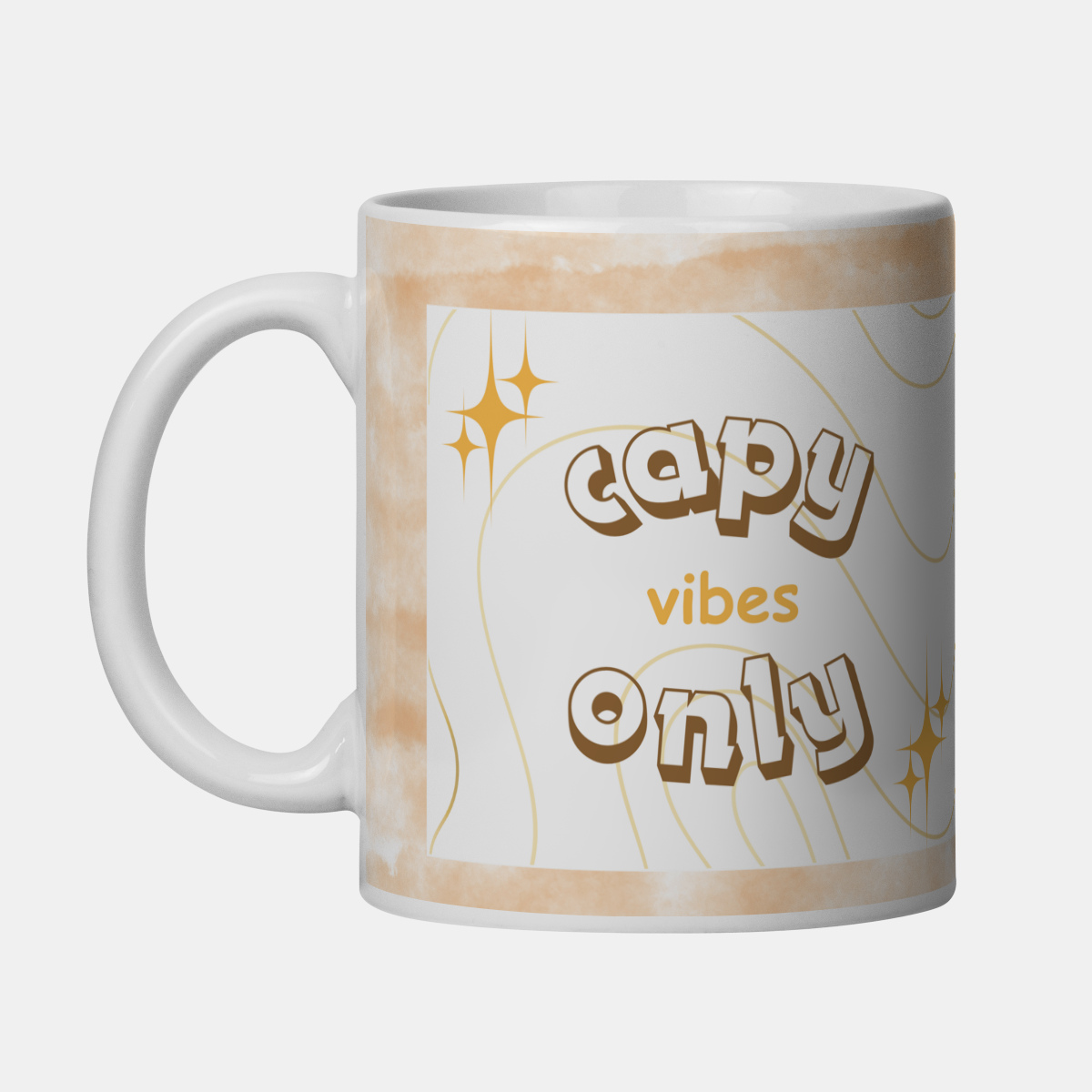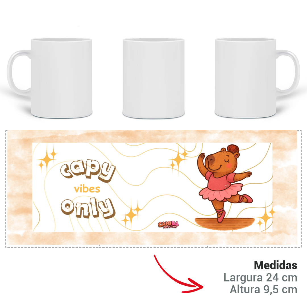 Comece o dia com boas vibrações e muito charme com a Caneca Capy Vibes Only da Caioba Fun Store.