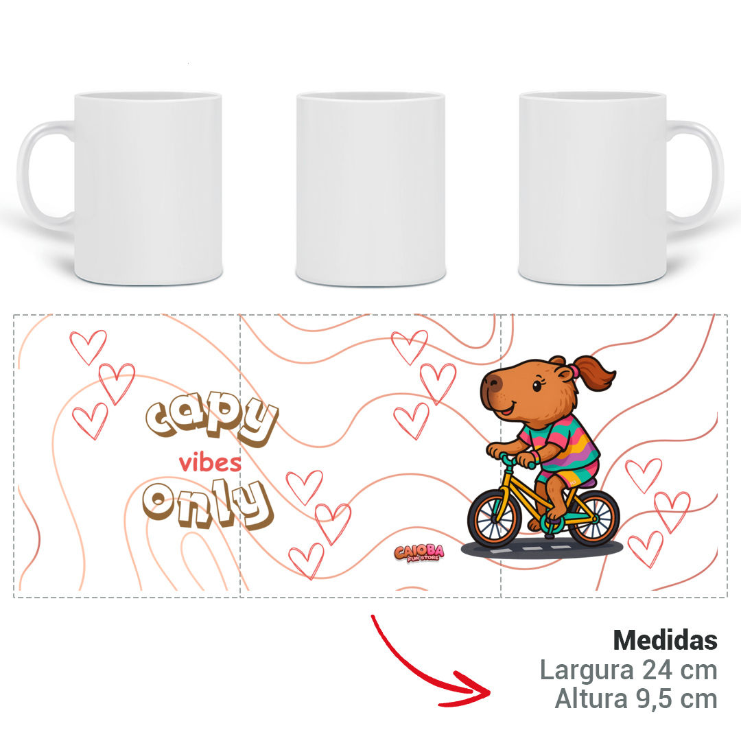 Leve boas vibrações e espírito de aventura para o seu dia com a Caneca Capy Vibes Only da Caioba Fun Store.