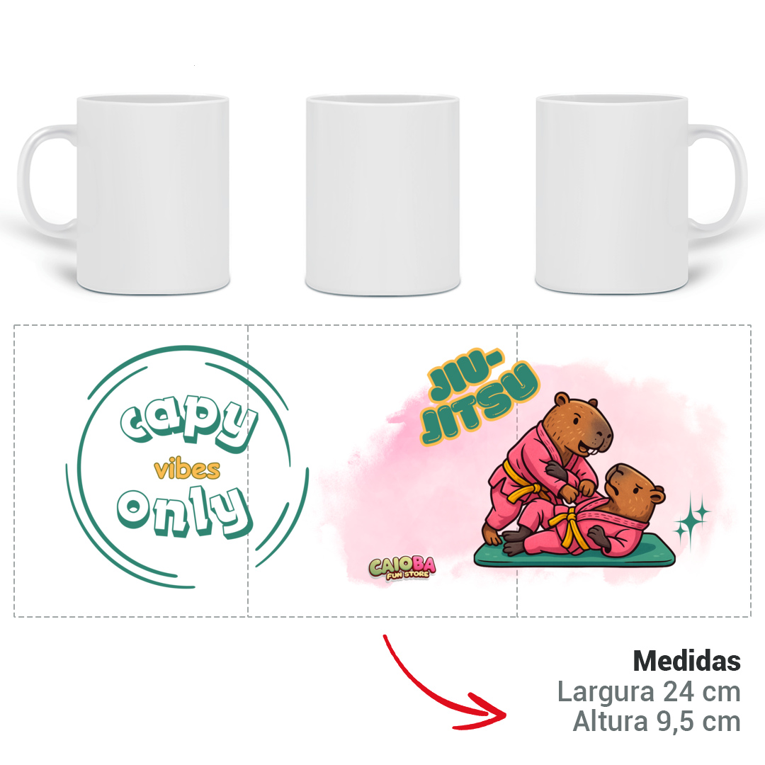 Diretamente do Reino Capivara do Caioba, a Capivara Jiu-Jitsu Menina chega pronta para mostrar que força e delicadeza podem andar juntas. Uma estampa cheia de atitude, ideal para quem ama o universo das artes marciais com um toque divertido e criativo.